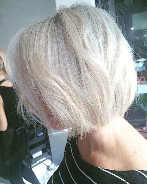 White all-over blonde is suitable for every hair-fashion style, as you can see in this shaggy/punky cut. The back and sides are shaved and long, swept-over layers with sharply textured tips accentuate the movement. And with edgy undercuts you also have the option to style as a cute, chin-length bob!