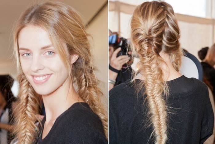 From simple plaits last season, braids are more likely to be plucked out of the romantic past. Diffused curls in to thick skeins, loose tendrils around the face, all are making an appearance. Messy structure resembles a hairdo more that of a peasant girl during the Renaissance. The trend is that the hair will have somewhat fuzzy and undone look.