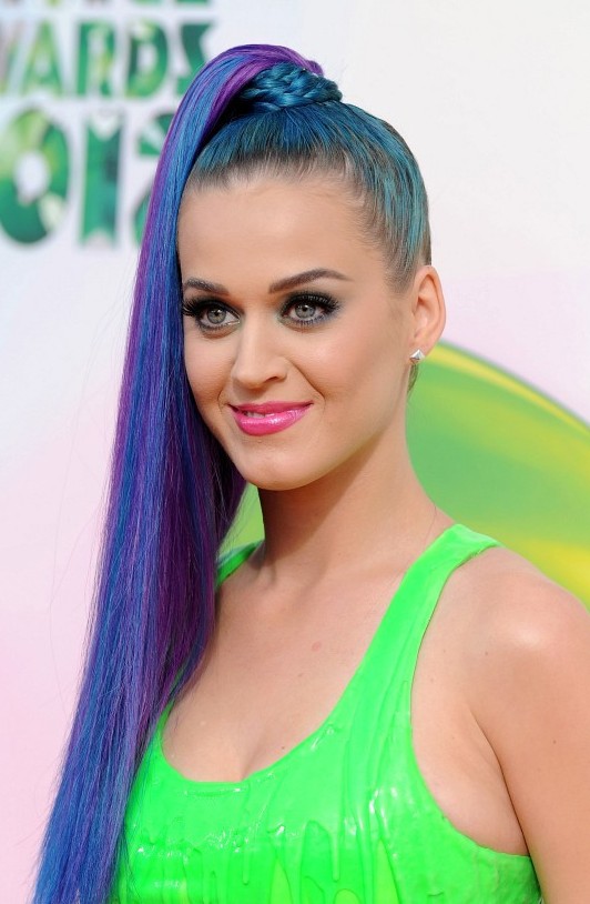 Multi-Colored Hair in vibrant hues is a hot look in this season, as seen here in bright blue and purple worn by Katy Perry.