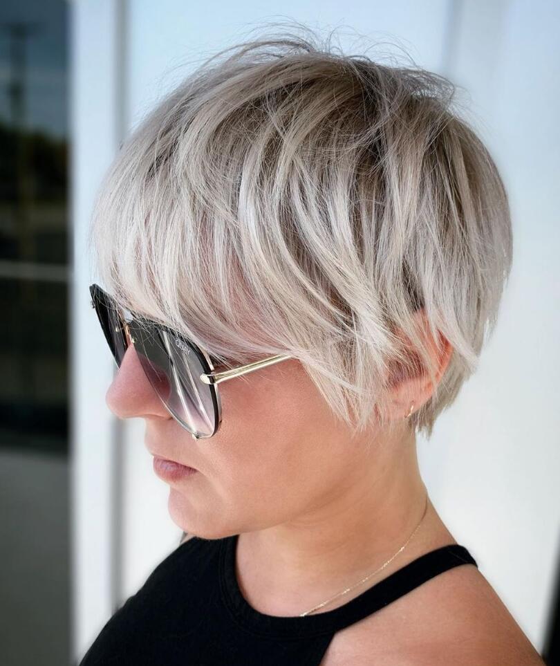 Michelle Williams is a professional when it comes to both acting and wearing chic short styles. She has managed, though, to transform her look through the years without her hair drifting below her shoulders. The secret to her growth from short and sweet Mia Farrow-esque pixie to a more recent bob length has been focusing length on the front. Her long side-swept bangs have been the star of the show for quite some time, distracting from what’s going on with the rest of her hair. As it’s grown, she’s maintained the bangs, which have eventually blended in beautifully with the rest of the growing hair.