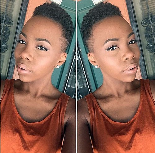 Streamlined tight curls faux-hawk – Short curly haircut for black women