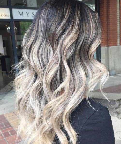 3. Extra-long waves with edgy gray and neutral-blonde balayage