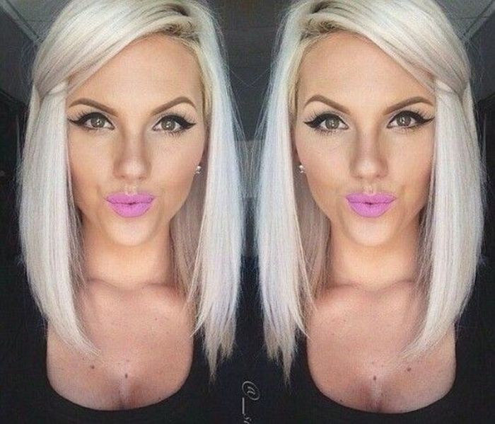 13. Pure glamor platinum-blonde long bob hairstyles for round face