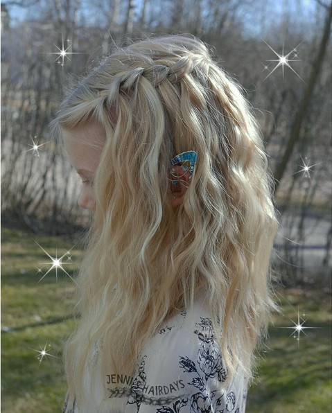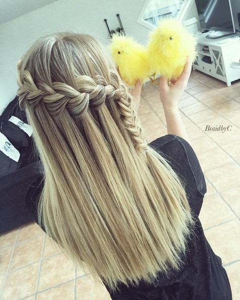 Late for school? Don’t fret! This is a classic waterfall braid hairstyle you can throw together in a matter of minutes. Even if you didn’t have time to shower or straighten your locks in the morning, this look takes boring drab hair to the next level with ease.