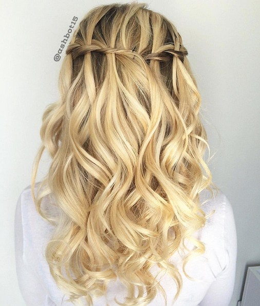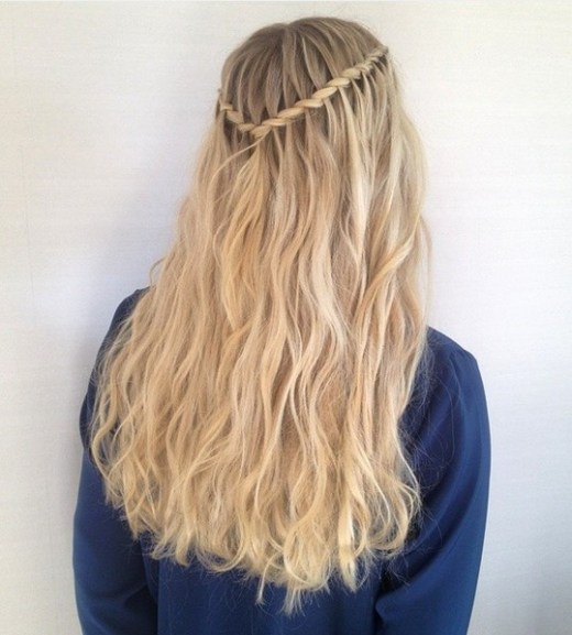 Switch up your favored waterfall braid by using a twisted braid instead of a traditional or fishtail. Leave the rest of your locks wavy and effortless for a natural looking style with a slight bohemian feel.
