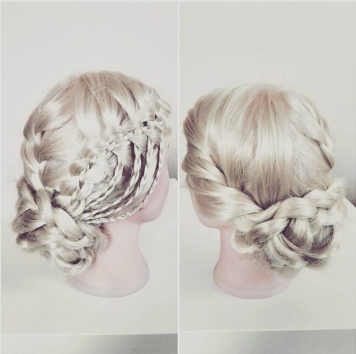 Braids galore! Boring updos? Forget about it! This stylish and sophisticated number is loaded with braids of all different shapes and sizes, leading back to a glorious braided chignon that’s both elegant and appealing to the eye. For a bold updo that’s loaded front to back with depth, consider this heavily braided style.