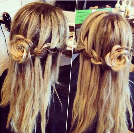 How amazing and dazzling is this look!? If you’re ready to fascinate the public with your hair, try out this awesome ‘do. It looks a lot harder than it really is and the outcome is absolutely stunning. Draping locks locked into a braid created a true waterfall look that is downright breathtaking.