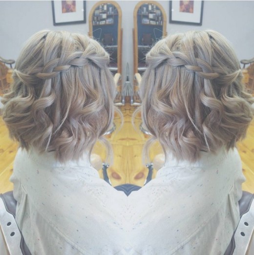 Waterfall braid for short hair: Even short haircuts can indulge in glorious waterfall braids! A flirty side braid is amplified with bold, bouncy curls that add some flirty spice and volume to this look. Great for everyday wear or even fancy events- it’s all in the attire and accessories you choose!